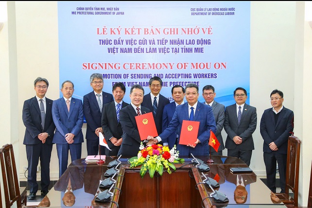 Lễ ký kết Bản ghi nhớ thúc đẩy hợp tác lao động giữa Cục Quản lý lao động ngoài nước (Bộ LĐTBXH) và Chính quyền tỉnh Mie, Nhật Bản