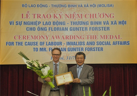 Trao tặng Kỷ niệm chương Vì sự nghiệp Ngành Lao động- Thương binh và Xã hội cho Trưởng đại diện Phái đoàn Tổ chức Di cứ quốc tế tại Việt Nam