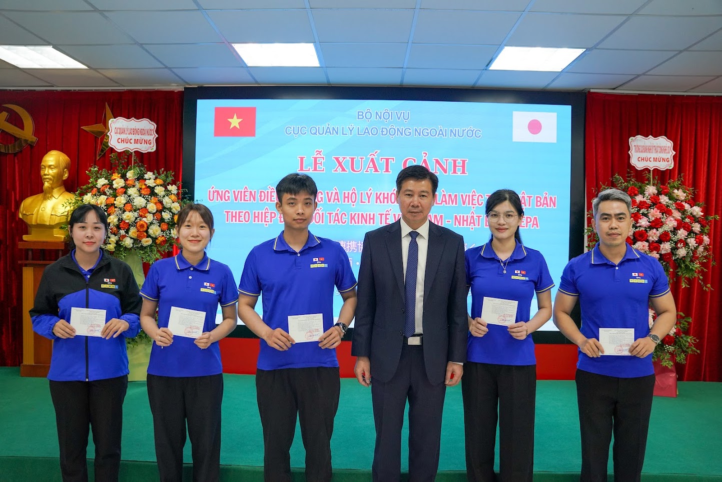 Ngày 03/6/2025 tại Hà Nội, Cục Quản lý lao động ngoài nước phối hợp với Đại sứ quán Nhật Bản tại Hà Nội cùng các cơ quan hữu quan của Việt Nam và Nhật Bản tổ chức Lễ xuất cảnh cho 70 ứng viên điều dưỡng, nhân viên chăm sóc sang làm việc tại Nhật Bản trong khuôn khổ Hiệp định Đối tác kinh tế Việt Nam - Nhật Bản - VJEPA (Chương trình EPA - Khóa 12).